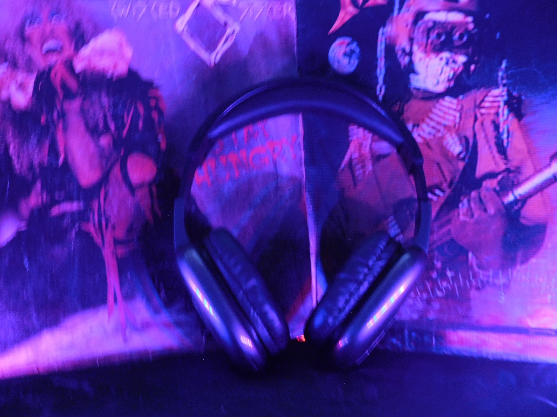 Unos audífonos dominan la escena, situados entre dos álbumes musicales. La música se siente incluso sin sonar.