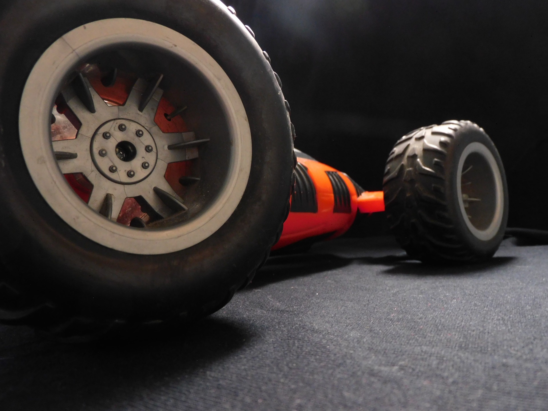 Un carrito de control remoto capturado justo cuando estaba en acción. Aunque estaba en movimiento, al estar enfocado muy cerca y con un fondo difuso, destaca totalmente del resto.