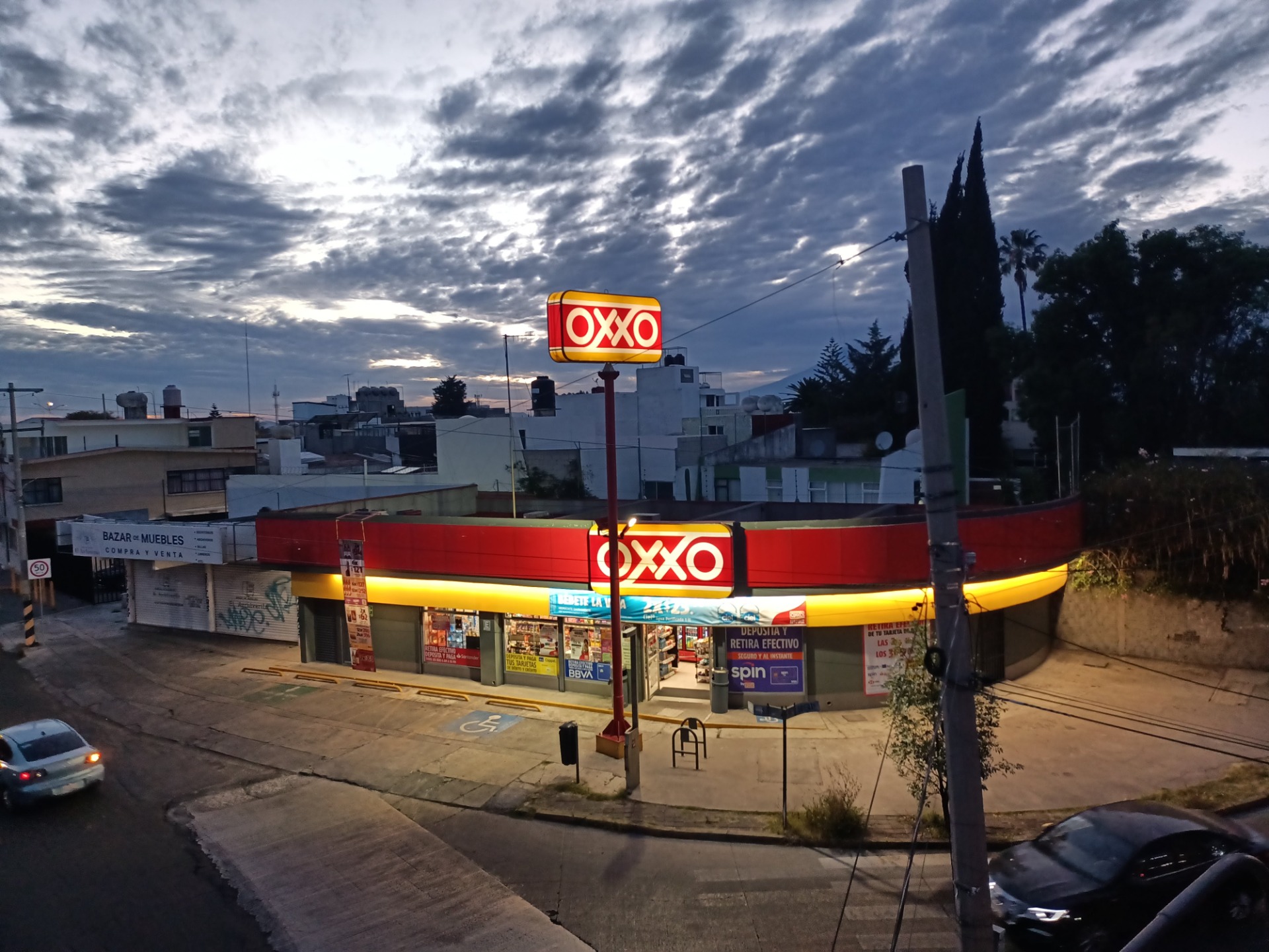 Usé la Nikon B600 con enfoque manual, cuidando la composición para dejar la tienda en un punto de interés y resaltar el cielo con tonos fríos ajustando el balance de blancos.